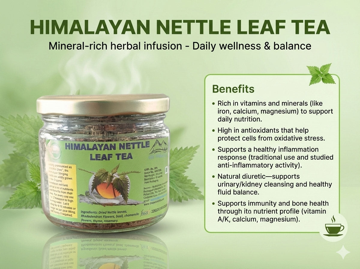 Locally known as Bicchoo Ghas, Himalayan Stinging Nettle grows wild in the pristine, organic soils of the Himalayas, absorbing powerful nutrients from its natural environment. While the plant is known for its stinging hairs in raw form, when carefully harvested and processed, its leaves transform into a highly beneficial herbal remedy that has been used for centuries in traditional healing practices.