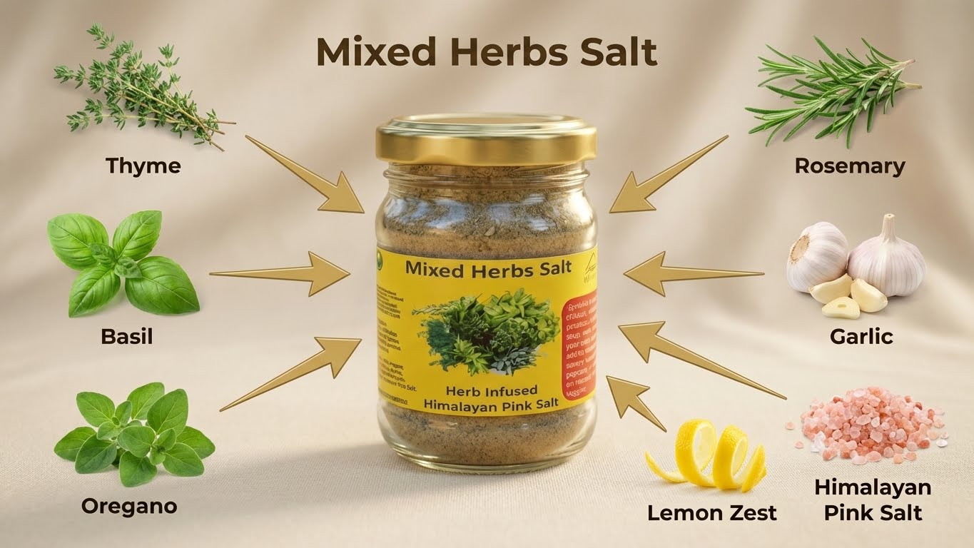 The Pahari Life Herbal Salts are a carefully balanced blend of Himalayan Pink Salt and dried herbs grown in the organic Ramgarh belt of Uttarakhand. Designed primarily as a finishing salt, it is sprinkled over cooked food to enhance flavour while preserving the freshness and aroma of the herbs. The Mixed Herbs Salt combines parsley, thyme, basil, oregano, marjoram, rosemary, sage, and mint, complemented with hill lemon zest and garlic for a distinctive taste. It pairs beautifully with salmon, chicken, potatoes, eggs, soups, roasted vegetables, popcorn, and even desserts. To ensure purity and freshness, the salt is sourced directly from local farmers and women’s self-help groups and prepared in small batches, which may result in delivery timelines of 7–21 days depending on location.