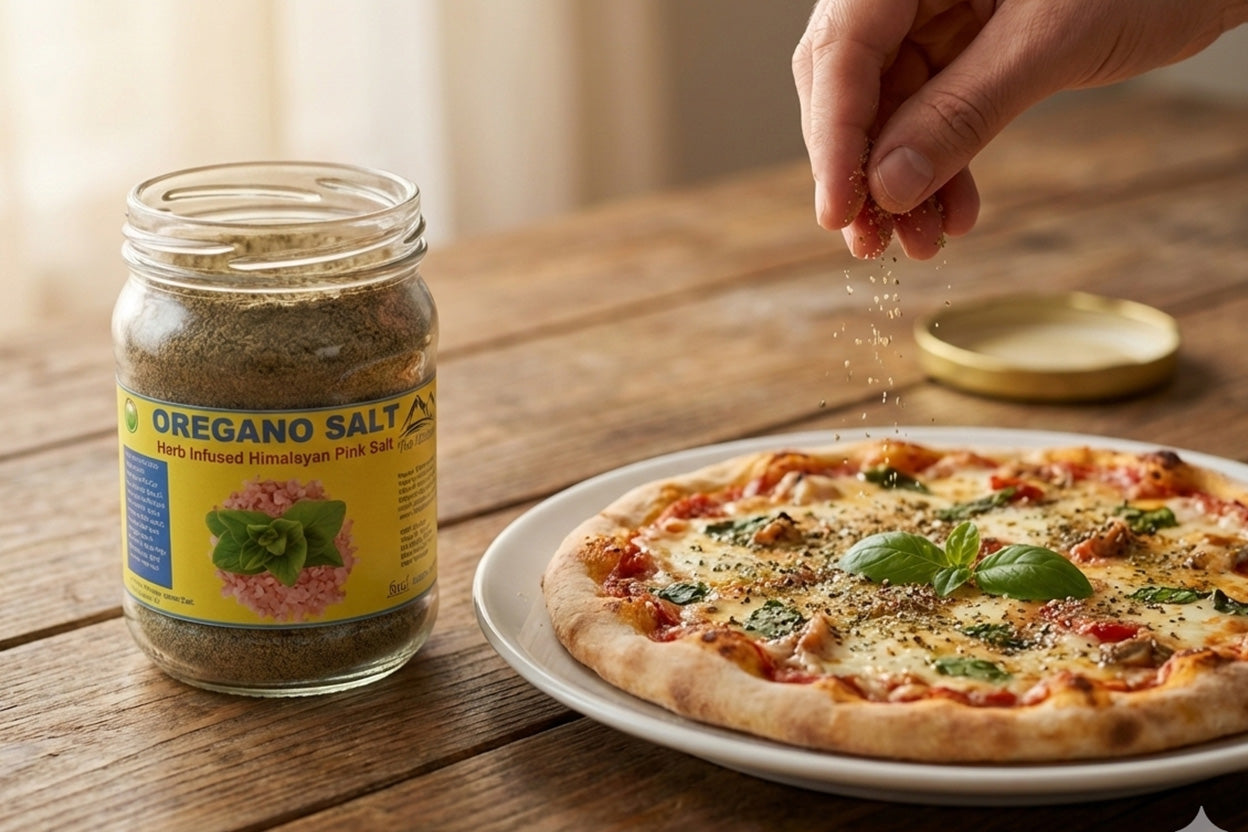 The Pahari Life Herbal Salts are a blend of Himalayan Pink Salt and dried herbs grown in the organic Ramgarh belt of Uttarakhand. This Oregano Pink Salt is designed as a finishing salt, meant to be sprinkled over cooked food to enhance flavour while keeping the herbs fresh for a longer time. The slightly sweet, fragrant oregano pairs beautifully with Himalayan Pink Salt, making it ideal for salmon, chicken, potatoes, steamed vegetables, pasta sauces, pizza, and Italian-style dishes. Oregano is traditionally valued for its antioxidant and antibacterial properties and is naturally rich in vitamin K, fiber, manganese, iron, calcium, vitamin E, and tryptophan. Prepared in small batches and sourced directly from local farmers and women’s self-help groups, this salt delivers freshness and authentic flavour in every pinch.