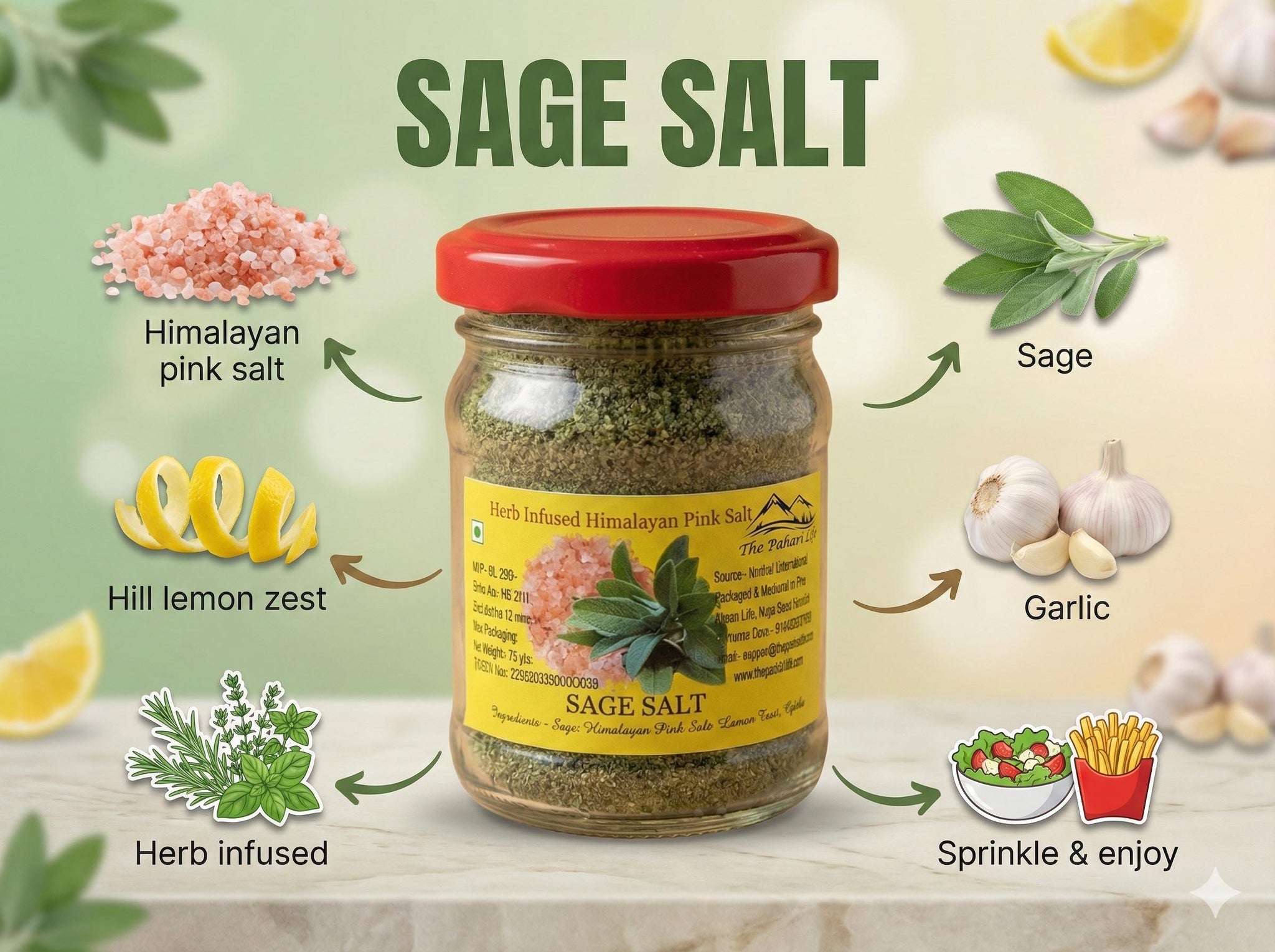 The Pahari Life Herbal salts are a blend of Himalayan Pink Salt and dried herbs grown in the Organic Ramgarh belt of Uttarakhand. Herbal salts are typically used as a finishing salt (meaning that they are usually sprinkled on cooked foods) versus using them during the cooking process itself. In addition to adding a delicious flavor to cooked foods, the other advantage is that the herbs added into the herbal salt blend will remain fresh for a long period of time as a result of mixing with the Himalayan Pink salt.