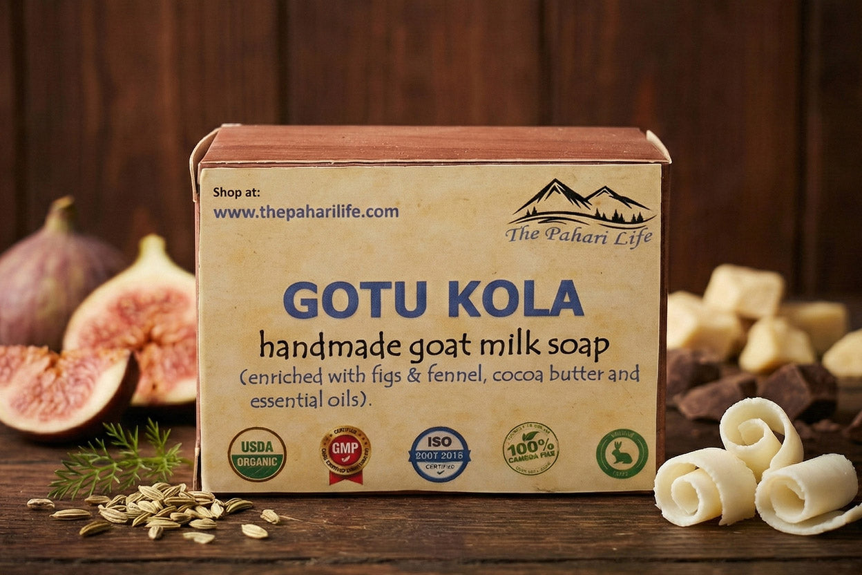 Ingredients - Cold pressed oils of - Gotu kola, Coconut, Sesame, Sunflower & hempseed, fig infused oil, cocoa butter, fennel essential oil, frankincense essential oil, Goat milk & NaOH*.