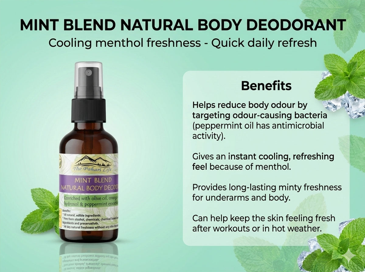 Discover The Pahari Life’s next-level organic personal care with this 100% natural, chemical-free deodorant made using gentle plant-based ingredients like orange hydrosol, olive oil, and peppermint essential oil. Free from alcohol, parabens, aluminium, synthetic fragrance, and other harsh chemicals, it supports your skin’s natural detox process instead of blocking sweat.