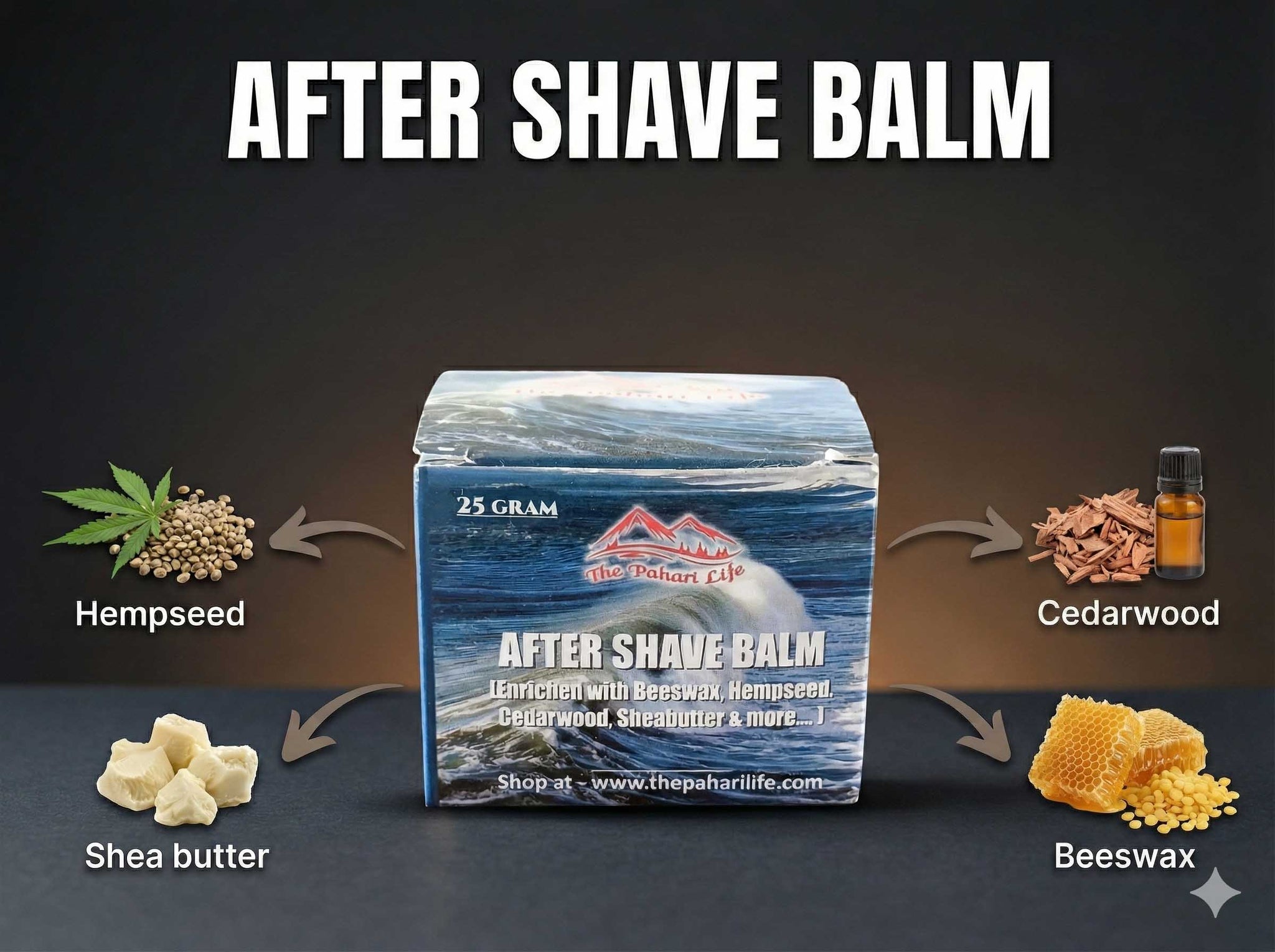 The Pahari Life’s After Shave Balm is designed to soothe freshly shaved skin, calm irritation, and deeply nourish to keep it soft, smooth, and moisturized. Its refreshing, earthy-herbal aroma comes from edible, steam-distilled essential oils that gently invigorate the senses while supporting skin repair and long-term skin health.