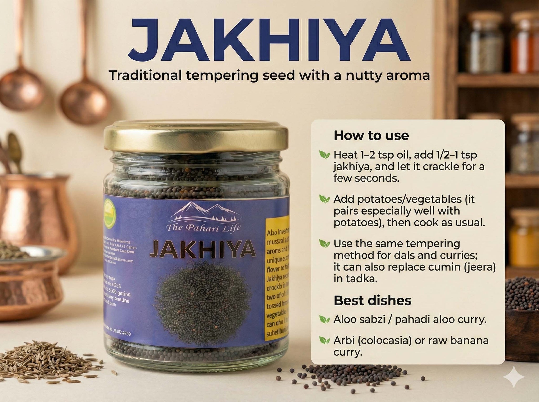 An essential ingredient in Uttarakhandi cuisine, Jakhiya is primarily used for tempering (tadka) and is loved for the warm, sweet aroma it releases when crackled in hot oil. It pairs especially well with potatoes and is commonly used in curries with raw banana or arbi (colocasia), as well as dals and vegetables. Due to its sharp pungency and crunchy texture, people in the hills often prefer Jakhiya over cumin or mustard seeds for tempering. Even the leaves of the plant are traditionally eaten as leafy greens in villages. Rarely found in regular supermarkets, authentic Himalayan Jakhiya is now gaining recognition, encouraging farmers to cultivate it organically with greater care.