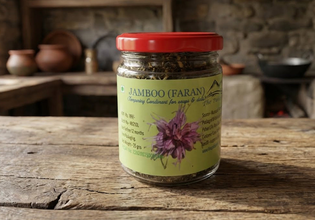 Jamboo adds a delicate onion-like aroma and rich flavour, often eliminating the need for additional seasoning beyond salt and spices. Known for its strong aroma and visual appeal, this dried herb can be stored for months and used whenever needed, enhancing both taste and nutrition.