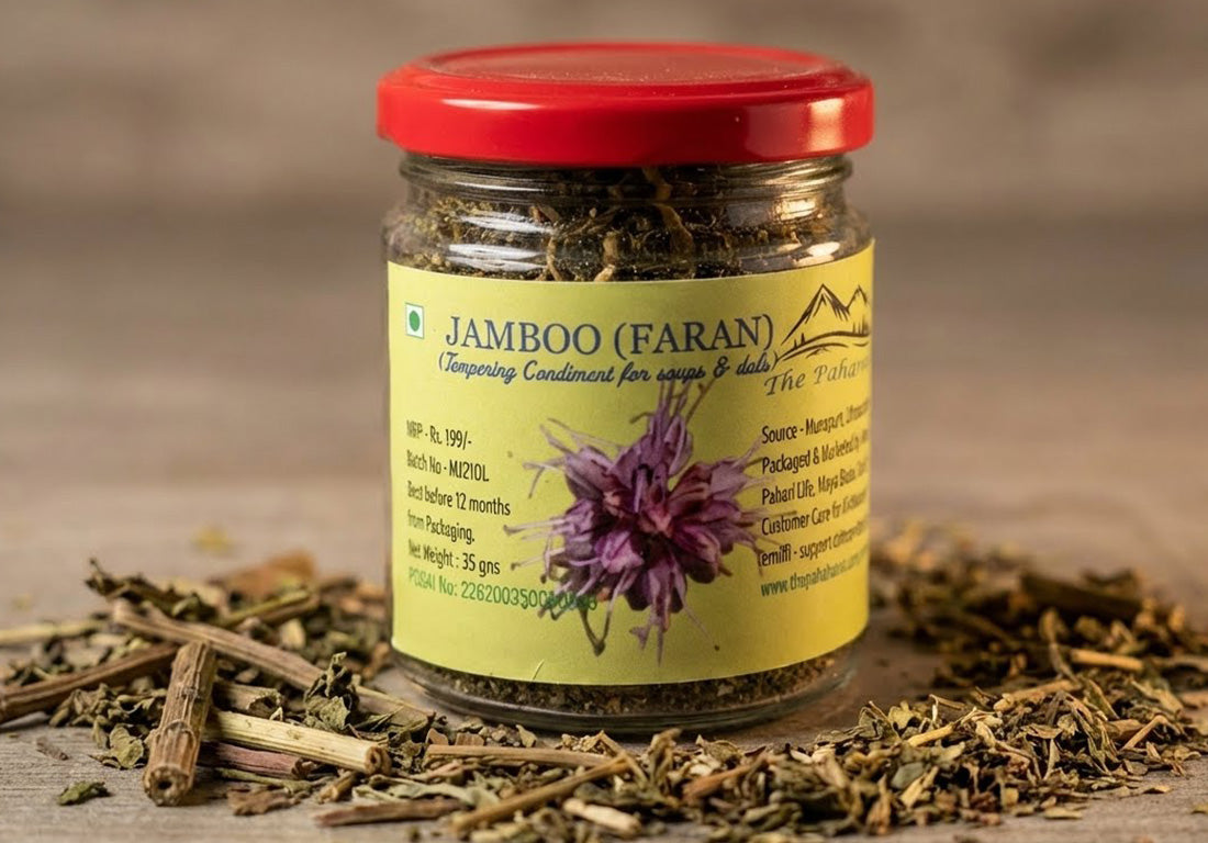 Sourced directly from certified organic farmers of Uttarakhand, Jamboo (Allium stracheyi), also known as Jhambu or Faran, is a traditional Himalayan herb grown at altitudes of 2,500–3,000 meters. A member of the onion family, its leaves and flowers are shade-dried and used as a natural seasoning in dals, soups, and Tibetan dishes.