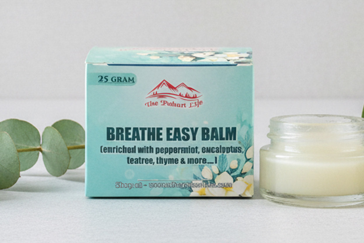 The Pahari Life's Breathe easy balm is 100% natural & organic and is formulated to soothe the inflamed mucous membranes and clear the airways to give you and your little one’s a relaxed sleep during cold & cough. Made with eucalyptus, peppermint, ginger and many more ayurvedic herbs to provide needed relief from respiratory disorders. This 100% plant derived blend of herbs and oils is completely free from synthetics and petroleum derived ingredients.. It relieves minor throat and bronchial irritations and eases minor aches and pains in muscles. It unclogs nostrils from nasal congestions to give a relaxed sleep & treats both dry and wet coughs. Its safe to use on babies as well.