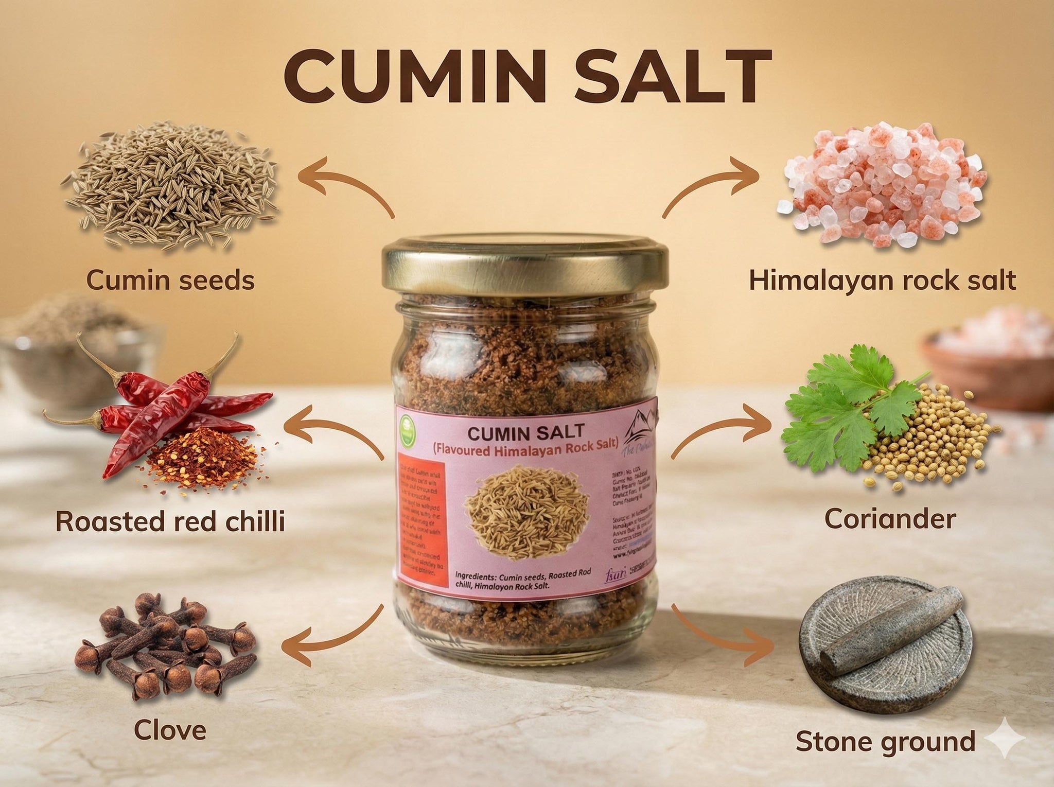 Pahari Cumin (Jeera) Salt is a traditional flavoured salt from Uttarakhand, locally known as Sil Pisi Loon or Noon, crafted to add an extra dimension to your cooking with its warm aroma and earthy flavour. This flavour-infused salt is designed to be used as a finishing seasoning, sprinkled over prepared dishes as a delicious garnish. It offers a clever and convenient way to add instant flavour without relying on a cupboard full of different spices.